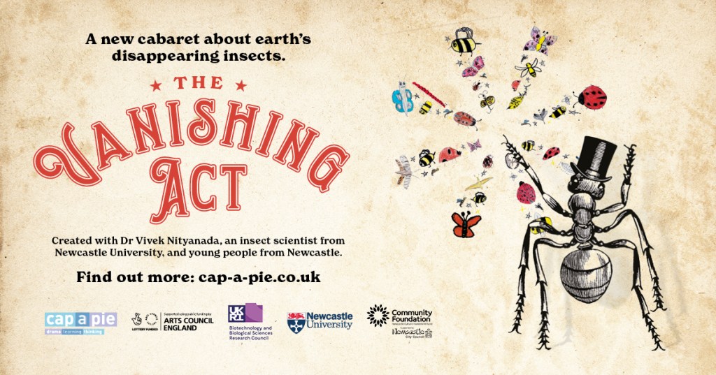 I’ve been collaborating with Cap-A-Pie Theatre, Newcastle to develop theatre pieces based on research at the university. We most recently developed and staged a family cabaret play, called The Vanishing Act about the diversity of insects and their declining populations. This play is funded by my BBSRC fellowship and the Arts Council