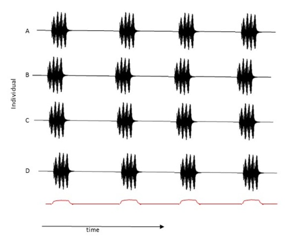 Greenfield MD, Aihara I, Amichay G, Anichini M, Nityananda V. (2021) Rhythm interaction in animal groups – selective attention in communication networks.